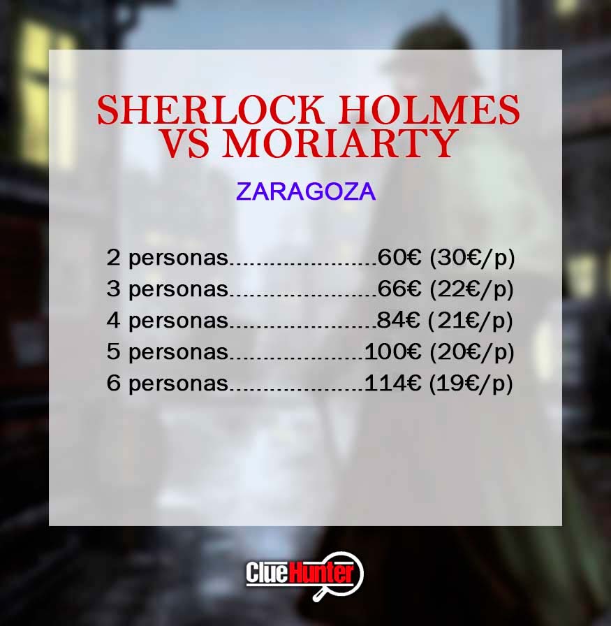 Sherlock Holmes vs. Moriarty es una actividad de ocio para toda la familia, emocionante y divertida. Apta para adultos y niños desde 8 años acompañados de un adulto, ya que hay que tener una buena capacidad de comprensión lectora y deductiva. Sin embargo, al no haber nada que pueda asustar a los más pequeños, podrán participar ayudando a buscar cosas en la sala siempre también acompañados de adultos.